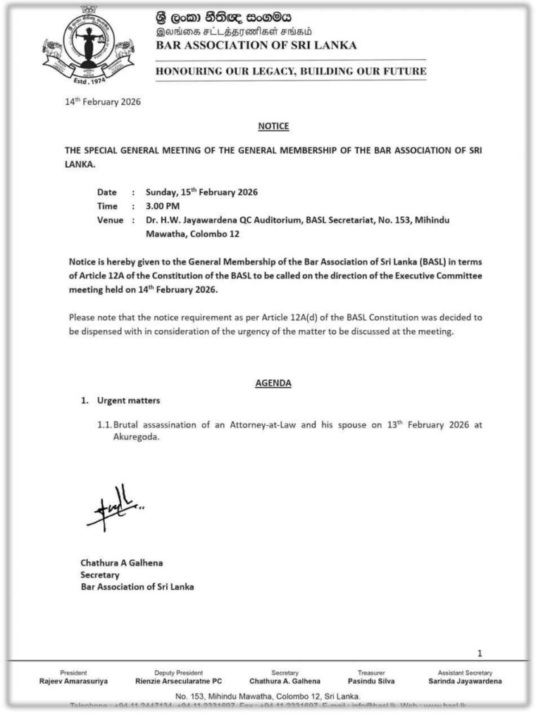 THE BAR ASSOCIATION OF SRI LANKA – BASL