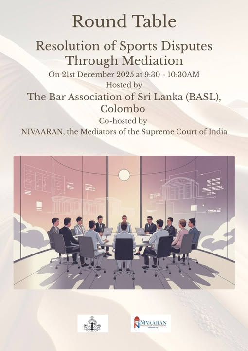 20 Dec Roundtable Discussion : Resolution of Sports Disputes through Mediation will take place ton 21st December at the BASL. Members interested may join. ... December 20, 2025 0 Latest News, News