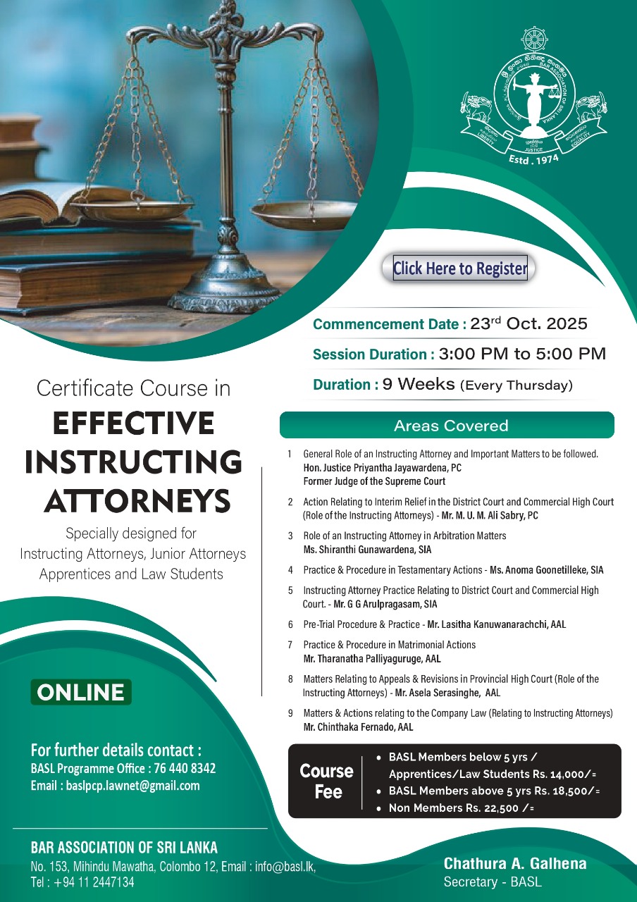 6 Oct BASL Nithi Neethi Sasi – Seminar #4 – Ratnapura Chapter ... October 6, 2025 0 Latest News, News