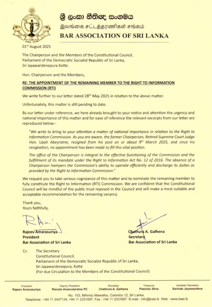 Follow up letter from the BASL addressed to the Chairman and Members of the Constitutional Council on the need to...