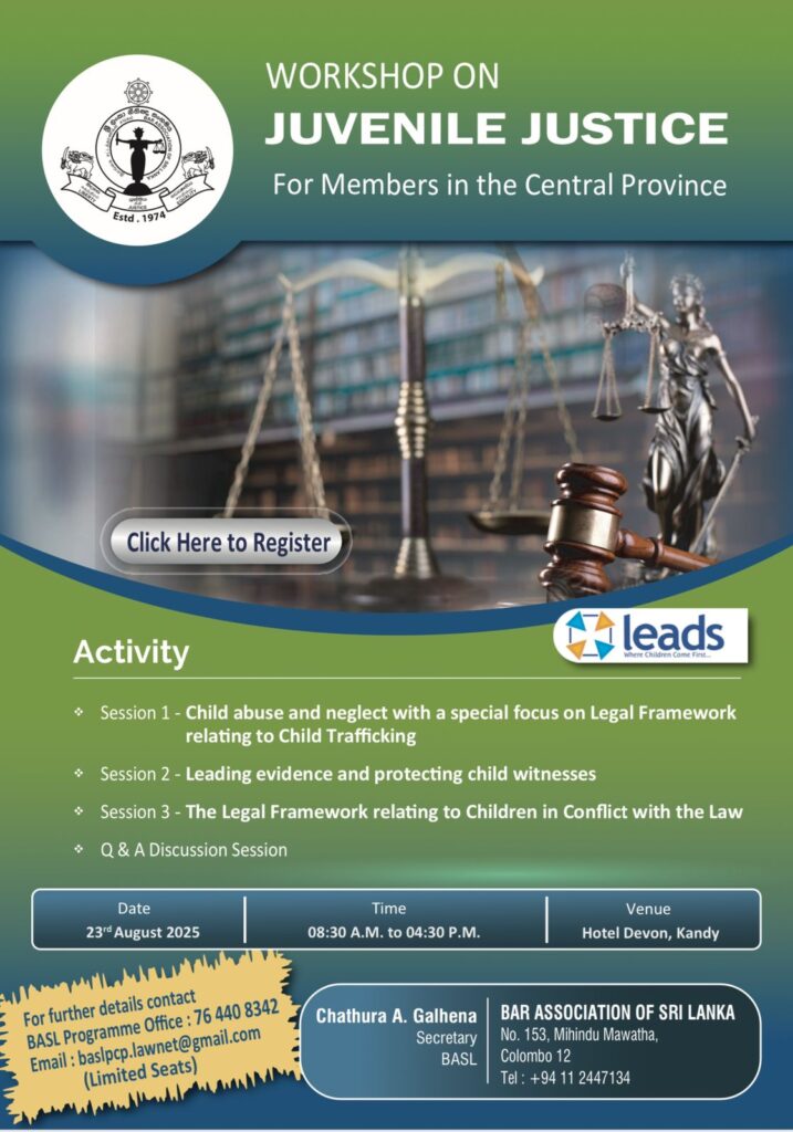2nd BASL Workshop on Juvenile Justice for Members of the Central Province in collaboration with Leads.