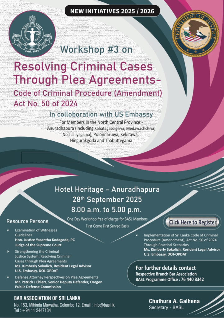 BASL Nithi Neethi Sasi Programme #3 : Kandy Chapter on Saturday, 4th October at Oakray Regency, Kandy.